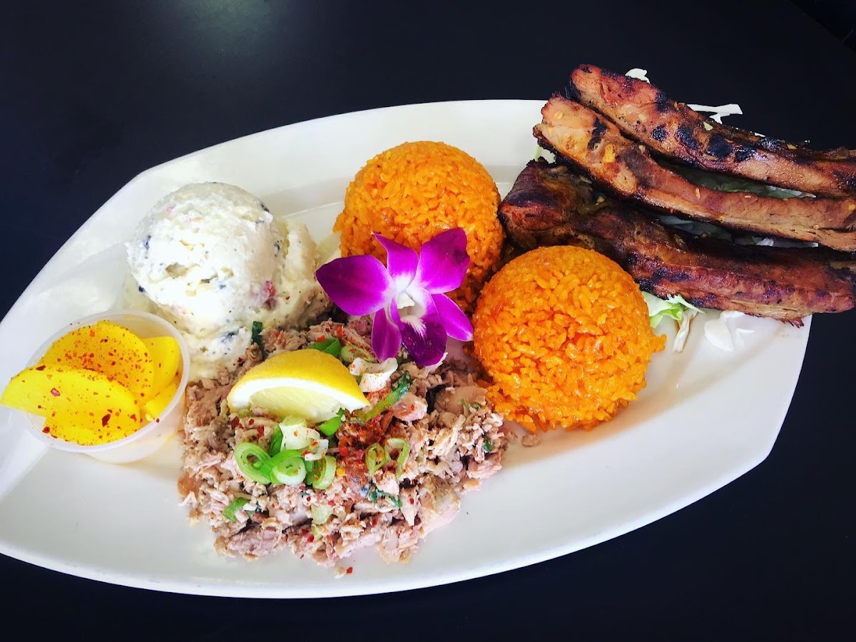 So we did a group work outing and were really looking forward to supporting this business. We had a reservation for ~30 ppl and the carved out an entire patio for us. The service was amazing, but the food......stole the show. We all grabbed some drinks and got appetizers for the table. The island samplers had so much delicious food that it almost the way to start the experience. The empanadas are flavorful and the crust is nice and flaky. The teriyaki wings were also amazing. I wish I grabbed some salt and pepper wing to compare. I got the Hawaiian Combo and I was blown away. The Hulu Hulu chicken was probably the best chicken I've ever had. It was juicy and the sauce was the bomb. I love me some Mac salad so I'm always happy to get a plate that has it. The pork was subtle, tender and perfectly paired with the chicken. I had plenty of left overs and if I didn't I would probably have gotten a to go plate. The repeat customers were singing the praises of how awesome this place is and now I'm doing the same. A definite must try.