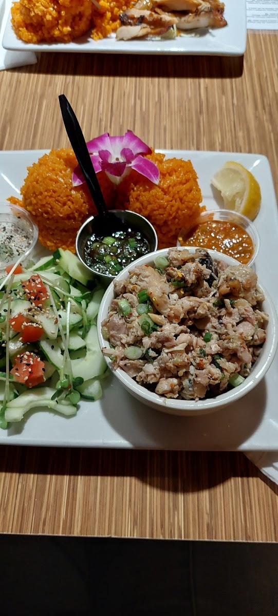 It's one of my staples in Bonita when I'm craving island food! I'm actually surprised how long it's taken for me to write a review given that I've been a repeat customer for many years. Drinks: I've actually tried something new this time around! Kahealani's Wave for 4 ppl! The waitress asked us if we wanted the shareable size for around 40 dollars, and we said, "Sure, why not?" This thing was so huge that the party next to us looked at the waitress as she brought the massive drink out carefully with two hands. This drink has several types of alcohol: light rum, gold rum, and 151 Proof Dark Rum! What's more dangerous is that I don't taste the alcohol but it hits you like a tidal wave after a few sips (the name is appropriate, lol). My go-to eats: Chicken Kelaguen. Always fresh, love the bright flavors of this cold dish. Salt and Pepper Chicken Wings. I love the batter and crisp on this. Different from the salt and pepper chicken wings that you get in the Chinese restaurants but different in a good way. Kalua Pig. Always a must! The pork is tender and flavorful. Red Rice This is my favorite guamanian side dish, and I have to get it every time I go here. Check out the bar next door if you get a chance. They have live music, and it's such a fun vibe.