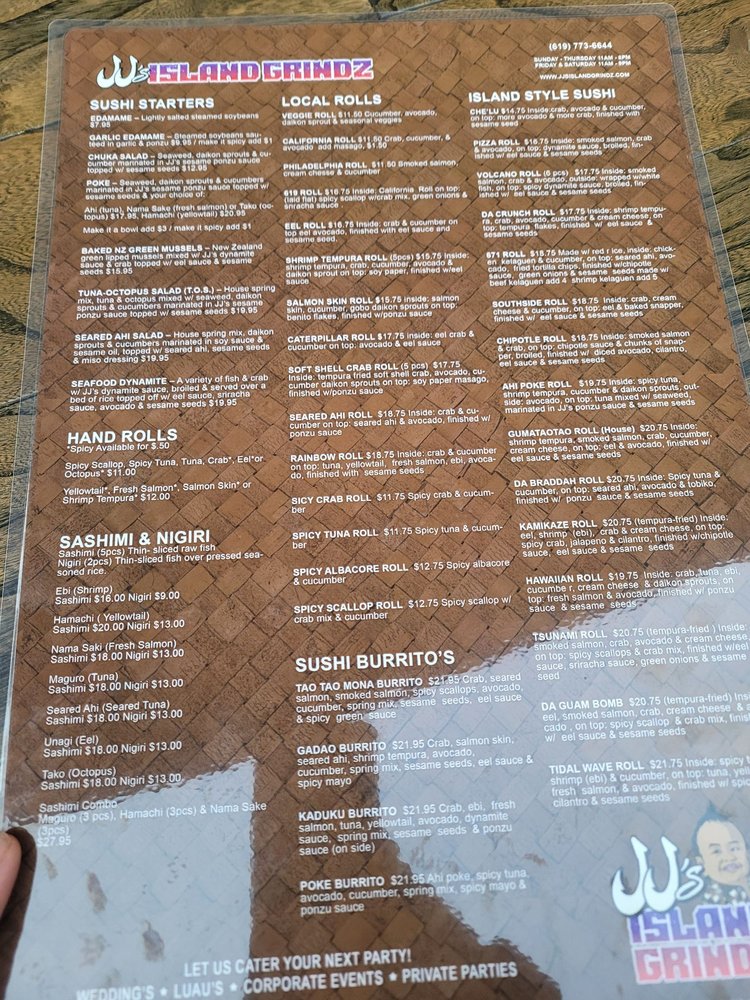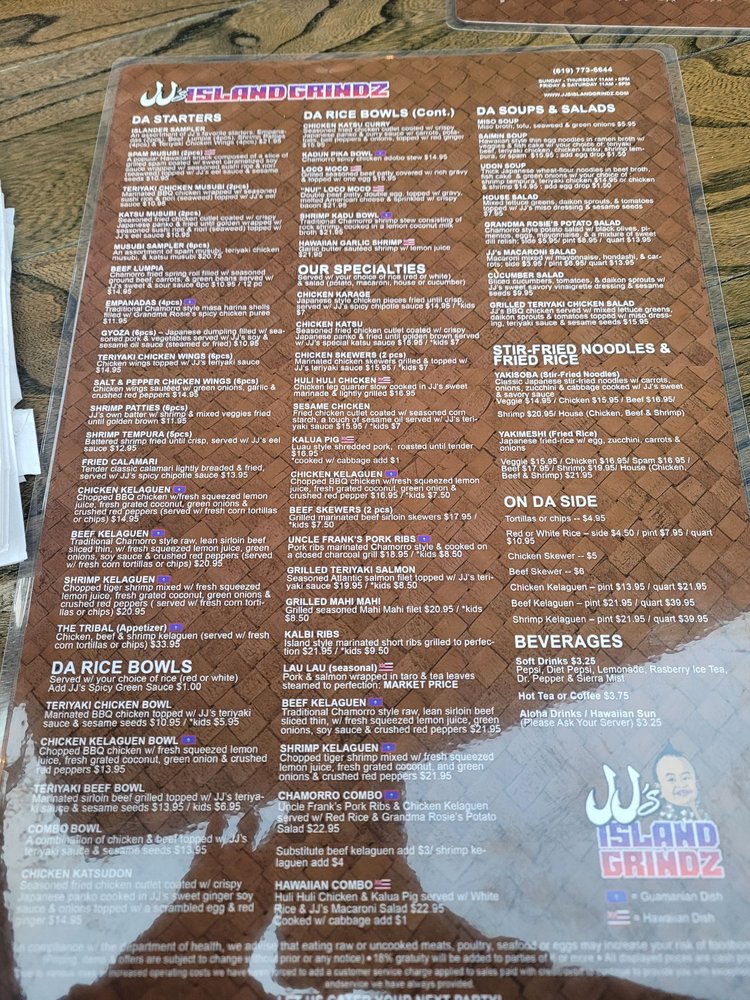 JJ’s Island Grindz Menu