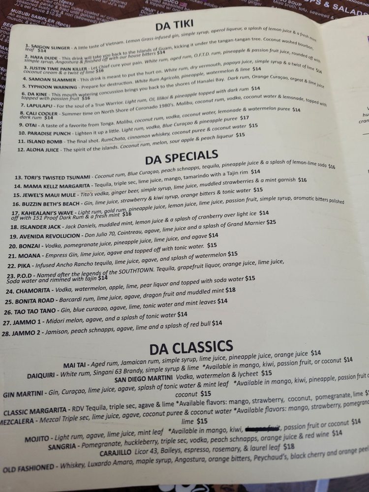 JJ’s Island Grindz is a Hawaiian sushi bar in Bonita, CA, offering a wide range of options for every type of customer. The menu features Hawaiian classics like Spam Musubi, Edamame, and Miso Soup, as well as unique dishes like Ahi Nachos and Poke Nachos. Customers rave about the flavorful and generously portioned dishes, especially the Chicken kelaguen and Huli huli. The restaurant has a fun and lively vibe with entertainment like karaoke and friendly staff, ensuring a great dining experience. With options for vegan and vegetarian customers, as well as outdoor seating and dog-friendly patio, JJ’s Island Grindz is a local gem for anyone craving flavorful island and Asian comfort food. Make sure to save room for their giant musubis and delicious kelaguen.